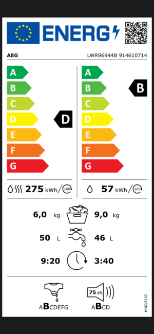 Energijos vartojimo efektyvumo klasė (Skalbimas + Džiovinimas) D